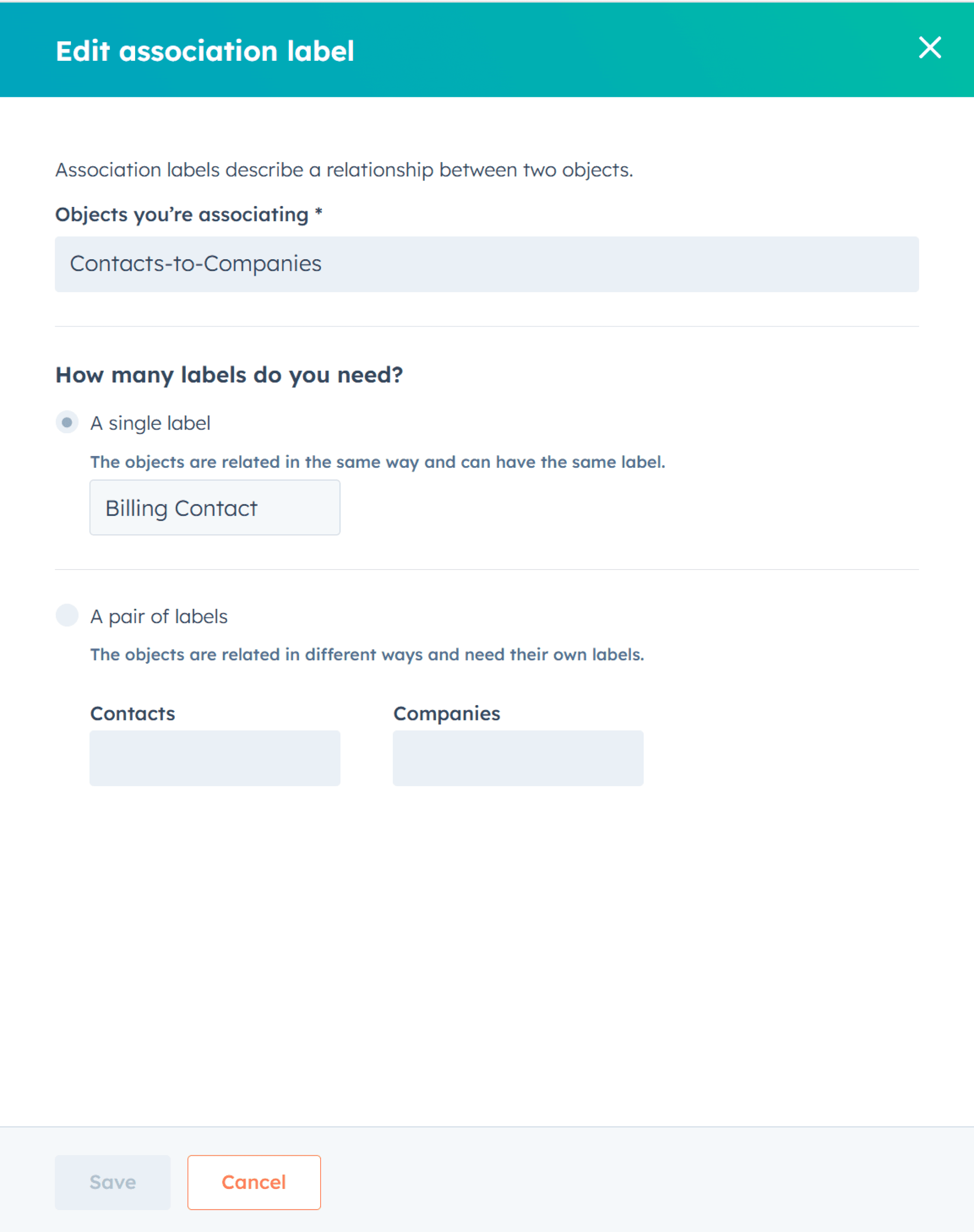 Create a new association label, such as “Billing Contact.”