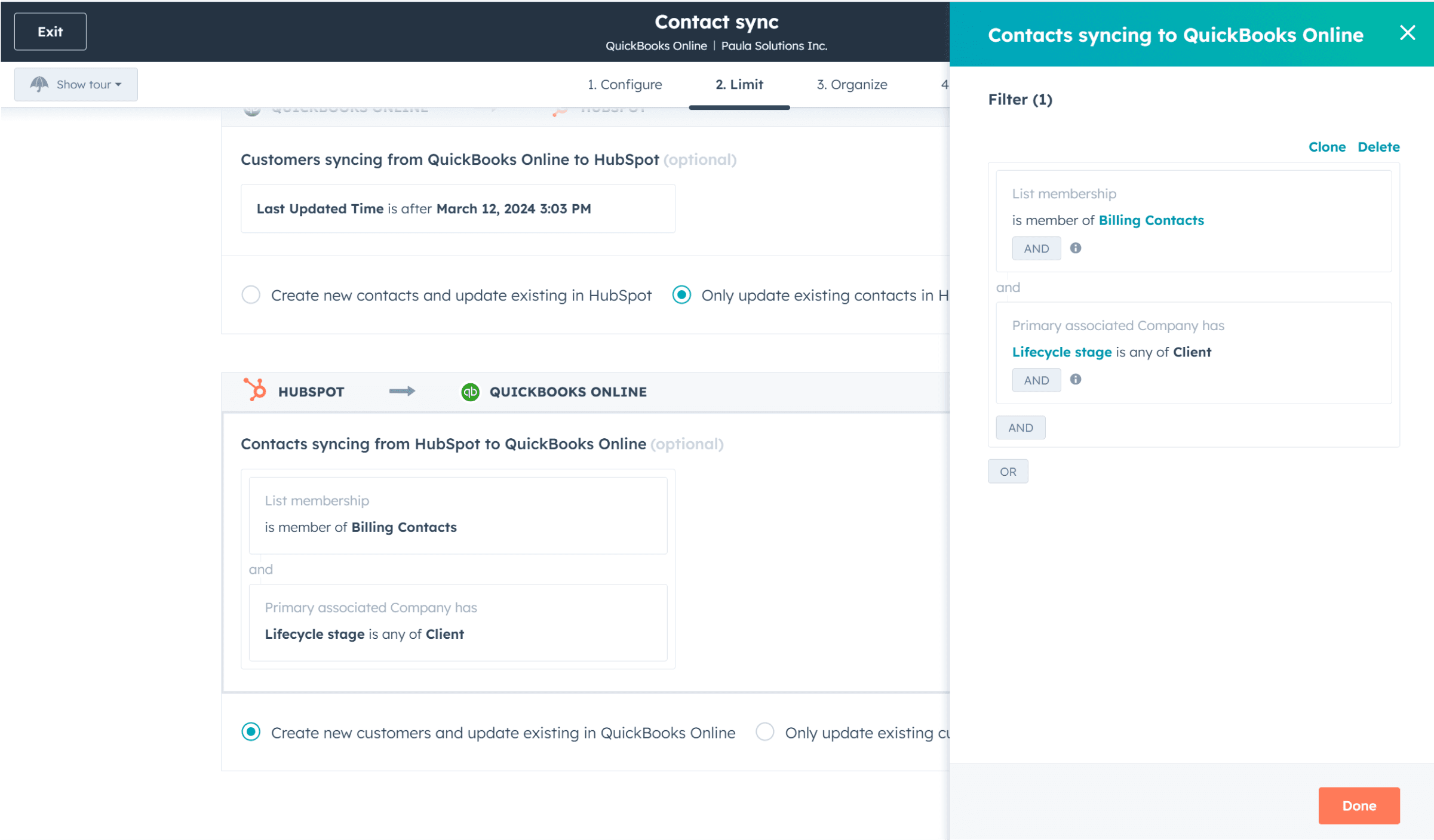 Step 4: Configure Filters in the HubSpot-QuickBooks Integration
